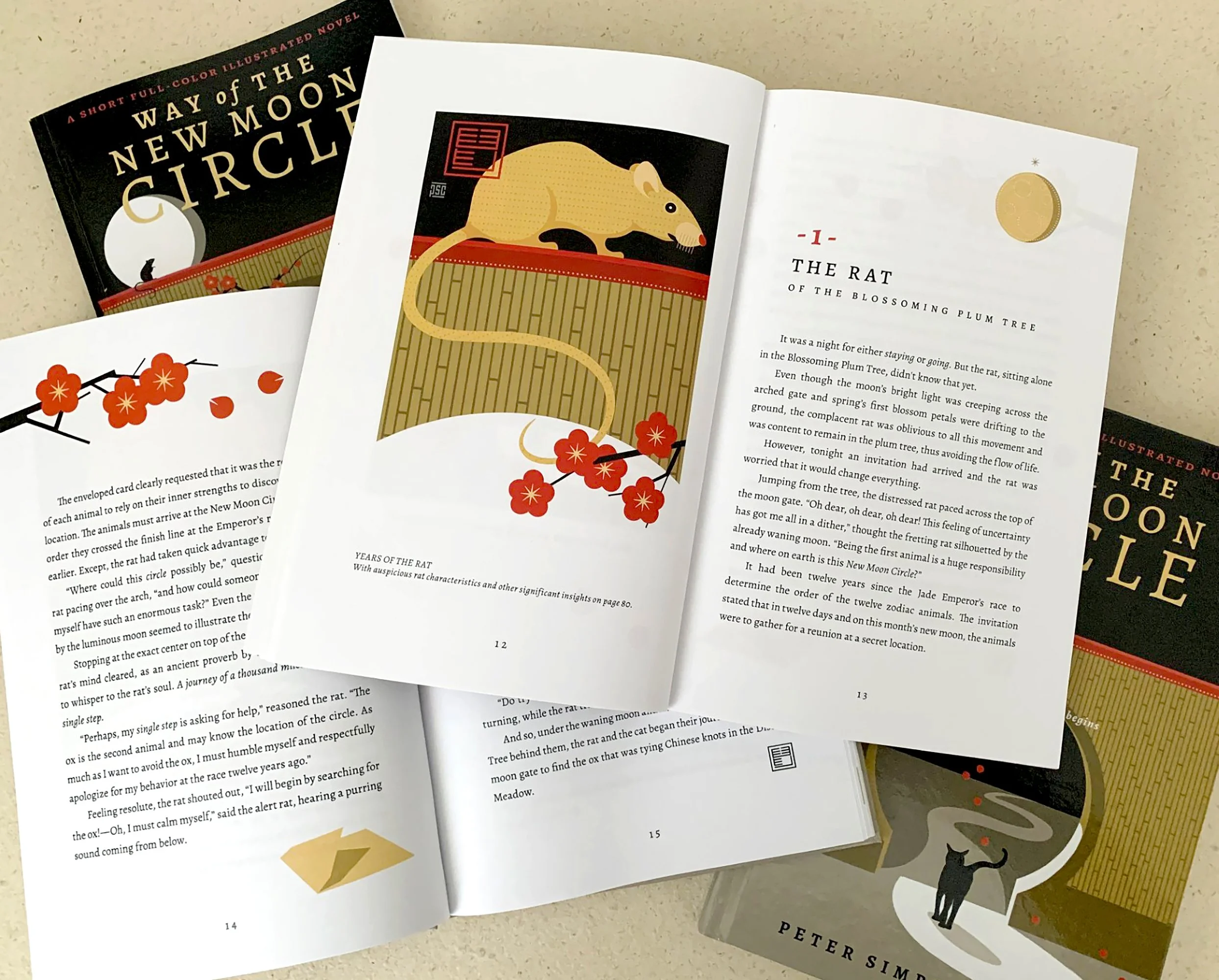 WHEN A DISTRESSED RAT AND A SNARKY CAT STEP THROUGH A MOON GATE, they discover they’re on an unexpected and ancient path. Joining them on this unpredictable journey is a miserable dragon and the remaining ten of the now scattered twelve Chinese zodiac animals. In a race against time, the animals quickly learn that only by working together can they find the mysterious New Moon Circle—and themselves.